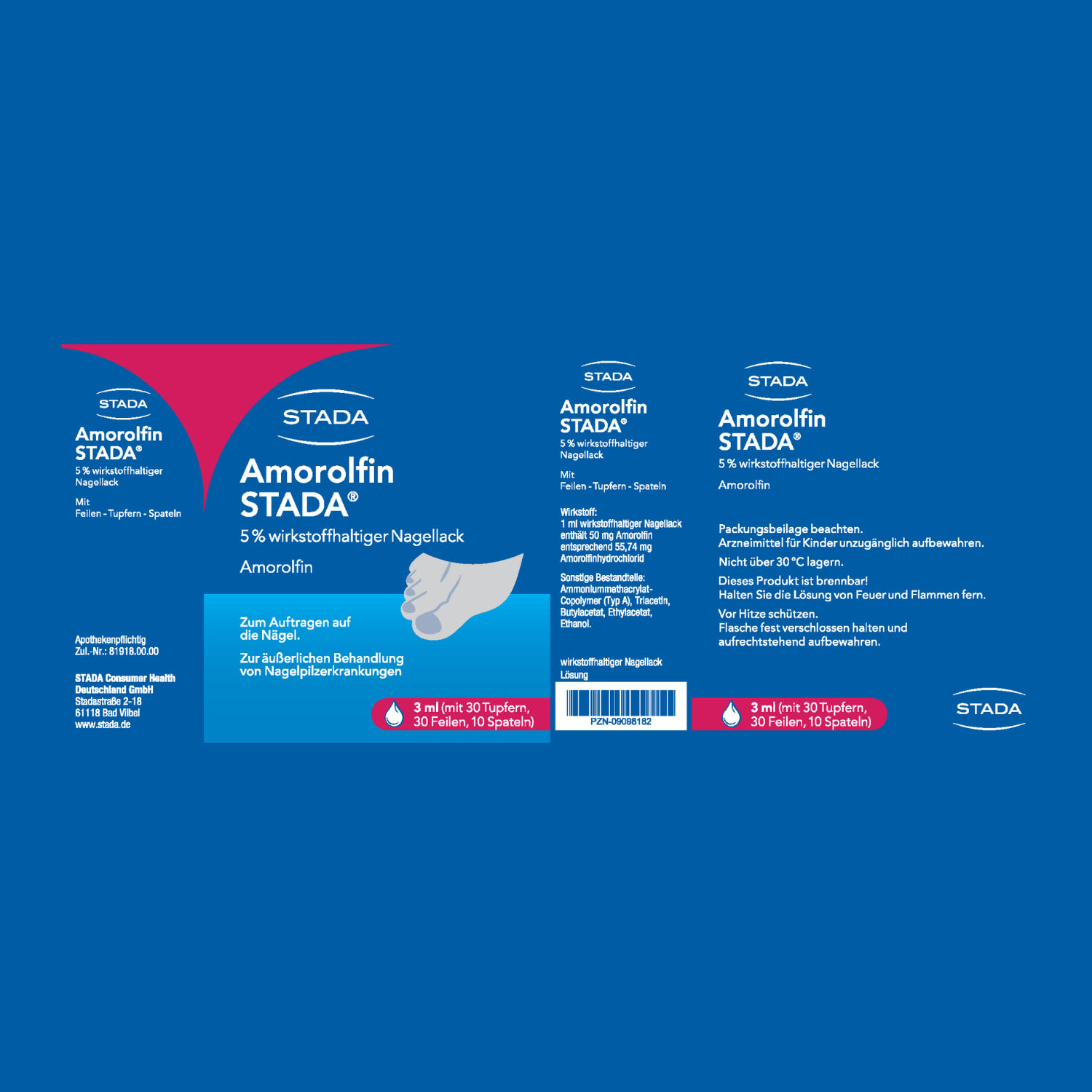 Amorolfin STADA® ist ein Antimykotikum (Mittel gegen Pilzerkrankung), welches eine Vielzahl verschiedener Pilze abtötet, die Nagelinfektionen verursachen können und die Ursache für verfärbte, dicke oder brüchige Nägel sind.