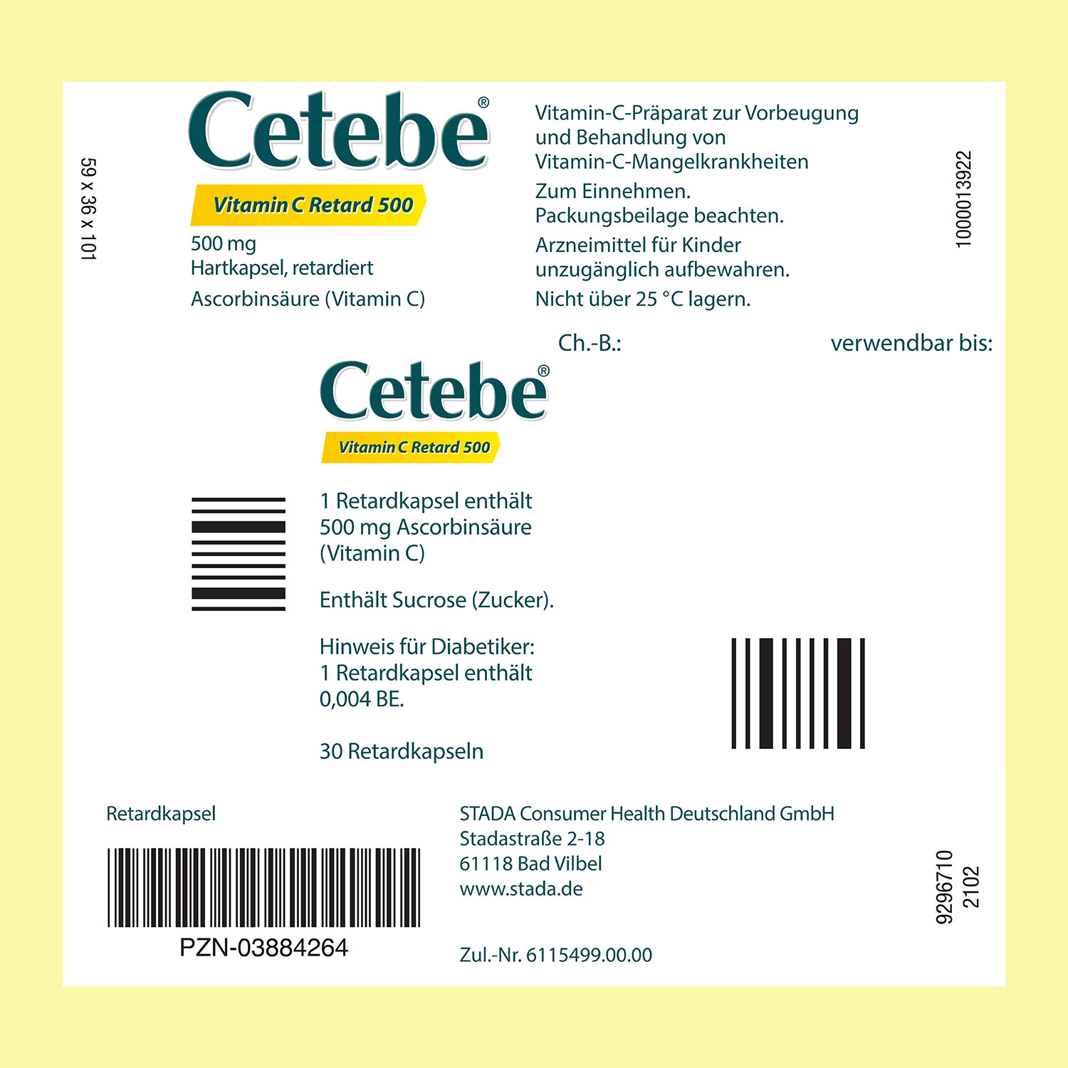 Cetebe® Vitamin C Retard 500 ist ein freiverkäufliches Arzneimittel. Die angegebene empfohlene tägliche Dosis darf nicht überschritten werden. Die Cetebe® Vitamin C Retardkapseln sind unzerkaut mit ausreichend Flüssigkeit einzunehmen.