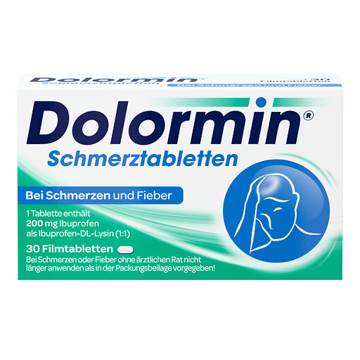 Dolormin® Schmerztabletten enthalten 200 mg des Wirkstoffes Ibuprofen. Ibuprofen gehört zur Gruppe der nicht-steroidalen Antirheumatika und kann zur Linderung von Schmerzen, Fieber sowie Entzündungen beitragen. In Verbindung mit dem körpereigenen Baustein Lysin ist Ibuprofen besser im Magen löslich und kann so schnell vom Körper aufgenommen werden, sodass Schmerzen in kurzer Zeit gelindert werden.