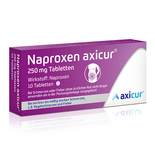 Naproxen axicur® 250 mg Tabletten ist ein schmerzstillendes, fiebersenkendes und entzündungshemmendes Arzneimittel (nichtsteroidales Antiphlogistikum/Antirheumatikum).