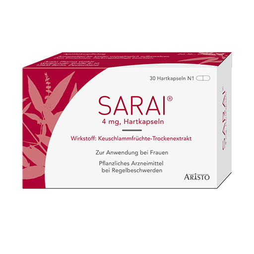 Sarai® enthält einen Trockenextrakt aus Keuschlammfrüchten (auch Mönchspfeffer genannt) und kann bei prämenstruellen Beschwerden und Rhythmusstörungen der Regelblutung angewandt werden.