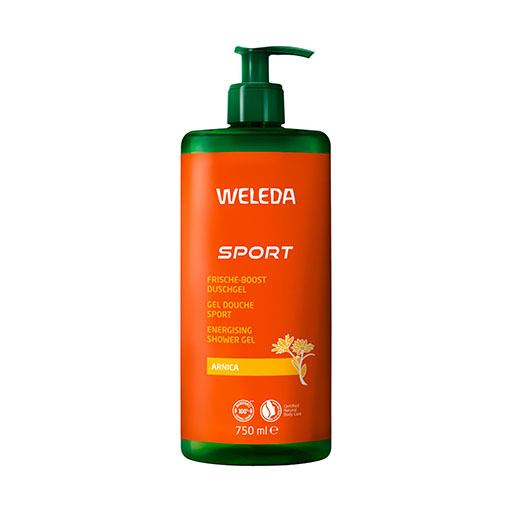 Tanken Sie neue Energie nach dem Sport und verwöhnen Sie Haut und Sinne. Das anregende Sport Frische-Kick-Duschgel mit Arnikablüten-Extrakt pflegt die Haut und entspannt. Natürliche ätherische Öle aus Rosmarin und Lavendel entfalten einen sportlich-belebenden Duft. Das Duschgel bewahrt die natürliche Feuchtigkeit der Haut, während milde Tenside auf Basis pflanzlicher Rohstoffe sanft reinigen.